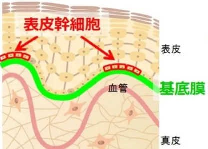 基底膜(dermal-epidermal junction,DEJ)是一類細胞外基質(zhì),存在于人體中所有的器官組織中,承擔著重要的功能。位于皮膚表皮層和真皮層的分界處,是一條長度約為0.5μm-1μm的波浪狀網(wǎng)膜結(jié)構(gòu),是二者的銜接和過渡結(jié)構(gòu)。主要成分有Ⅳ型和Ⅶ型膠原蛋白、層粘連蛋白、網(wǎng)蛋白/巢蛋白、整合素等,通過它們交聯(lián)形成的網(wǎng)狀結(jié)構(gòu),構(gòu)成了基底膜豐富多樣的生物學(xué)功能,主要為表皮-真皮的連接功能,信號傳導(dǎo)功能及滲透屏障功能等。