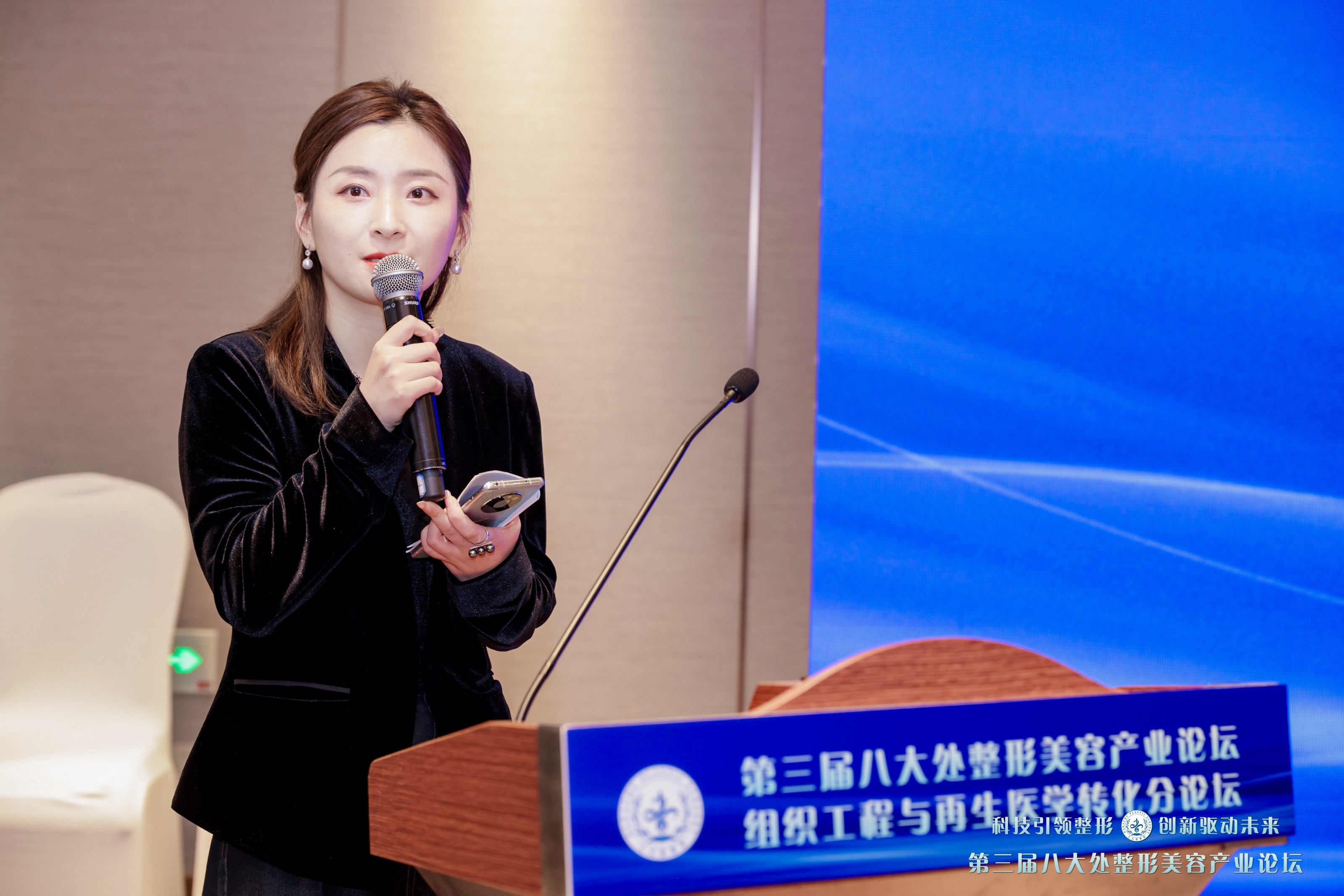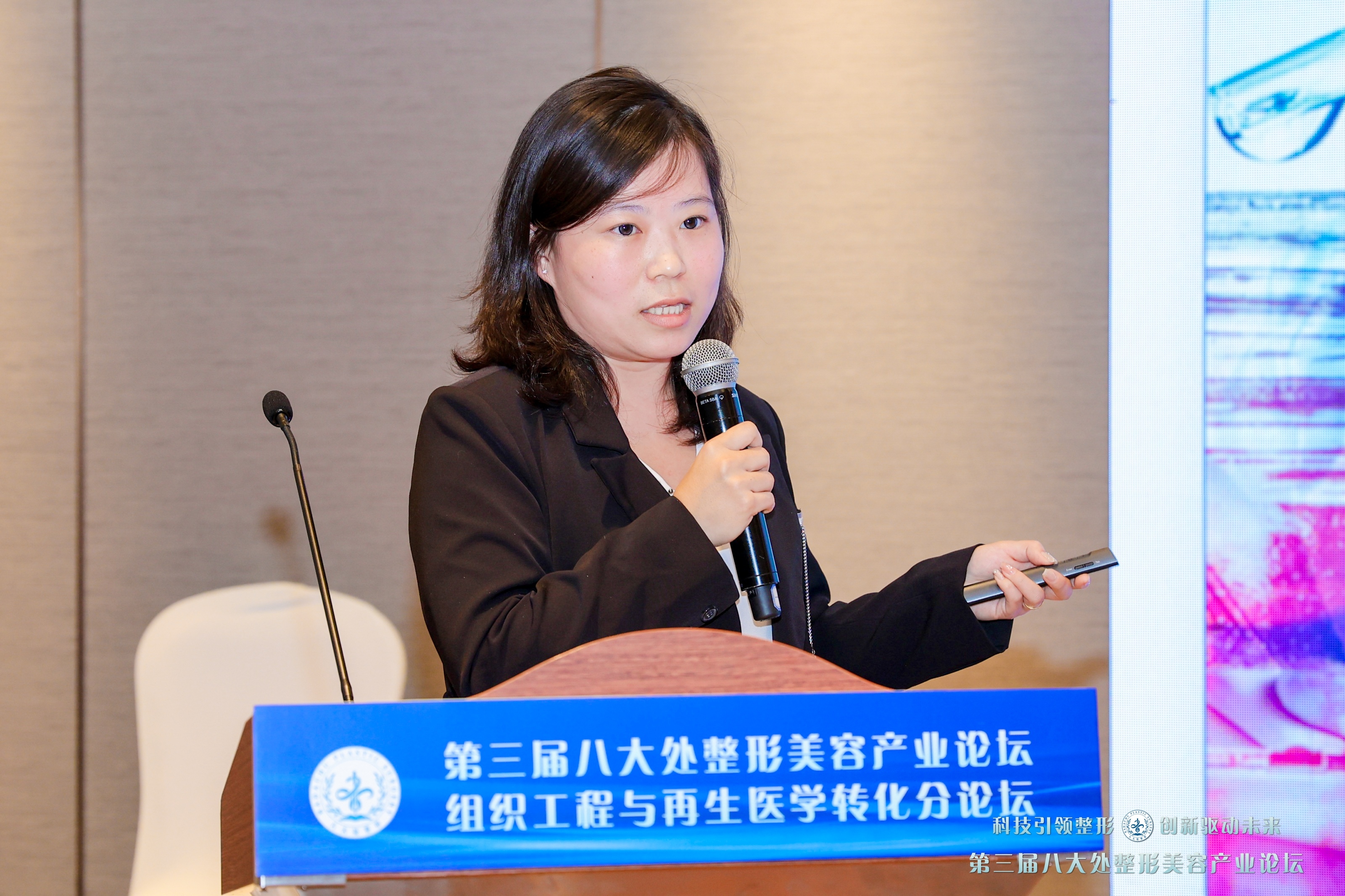 北京帝康醫藥投資管理有限公司總經理助理趙慧女士代表王海濱教授發表了題為《脫細胞基質生物材料的應用及其產業化》的演講,她詳細闡述了脫細胞基質分類、生物學功能及技術難點。重點討論了其在骨、軟骨、血管等組織修復中的應用,以及作為醫美填充材料的潛力。此外,還介紹了脫細胞基質材料的產業化現狀、已上市產品及在研項目,并通過動物試驗和臨床案例驗證了其安全性和有效性。