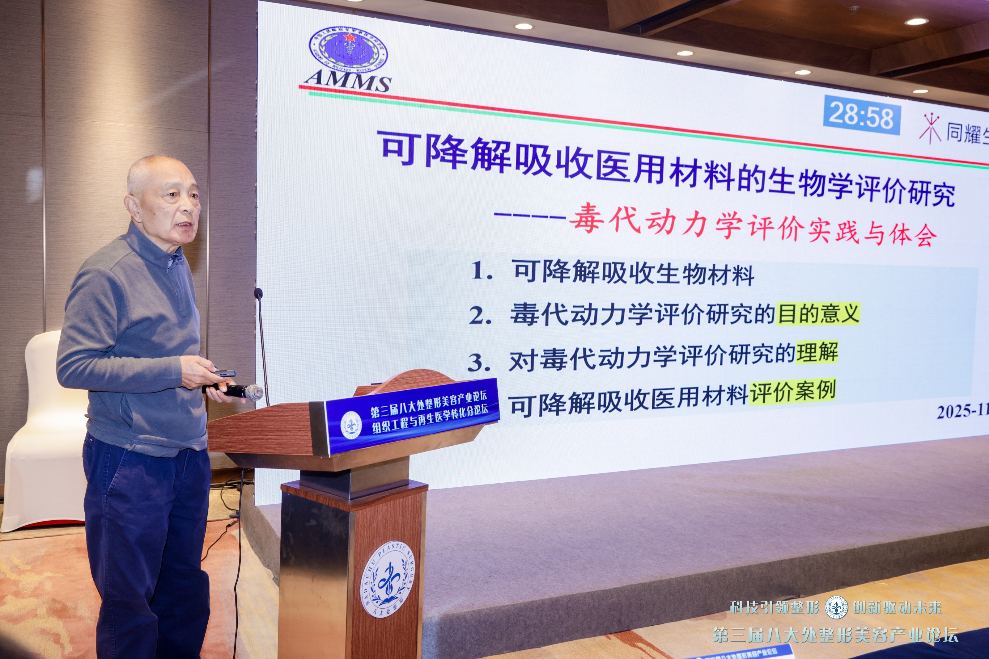 原軍事科學院軍事醫學研究院研究員、CMDE/CDE咨詢專家張振清教授介紹了《可降解吸收醫用材料的生物學評價研究——毒代動力學評價實踐與體會》。他強調,毒代動力學評價對確保材料臨床安全性、理解毒性機制及支撐材料研發至關重要,包括暴露 - 毒性關系分析、安全范圍評估和降解產物行為分析。他還分享了放射性標記示蹤等關鍵技術,并結合硬腦膜封合膠、止血紗布等案例,闡釋了毒代動力學在材料生物學評價中的實踐應用與科學價值。