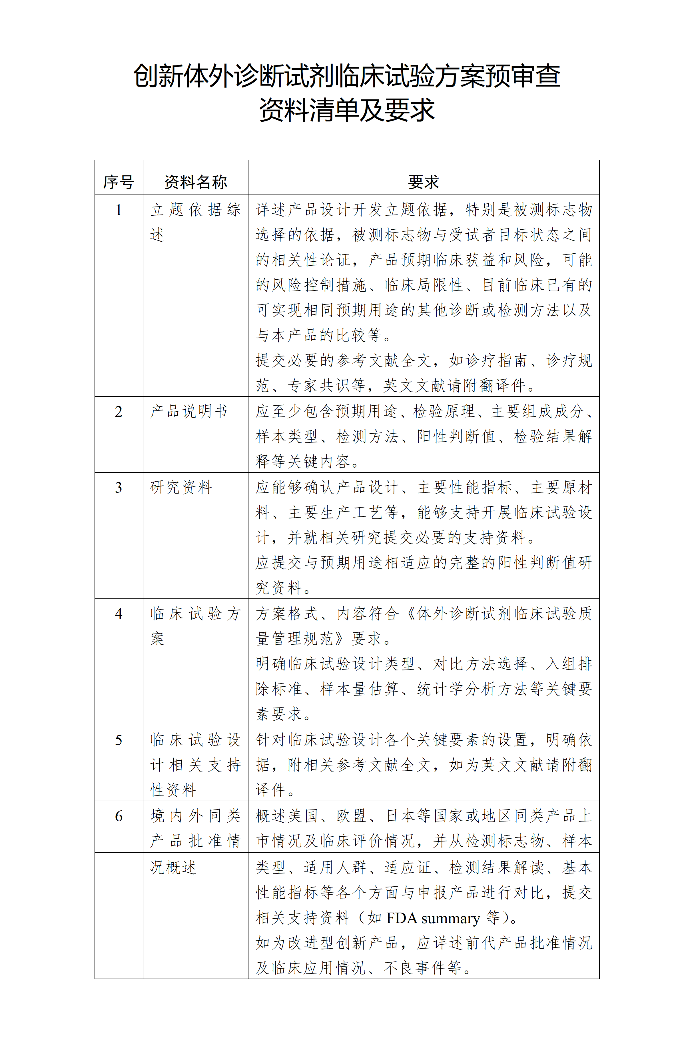 2.創新體外診斷試劑臨床試驗方案預審查資料清單及要求