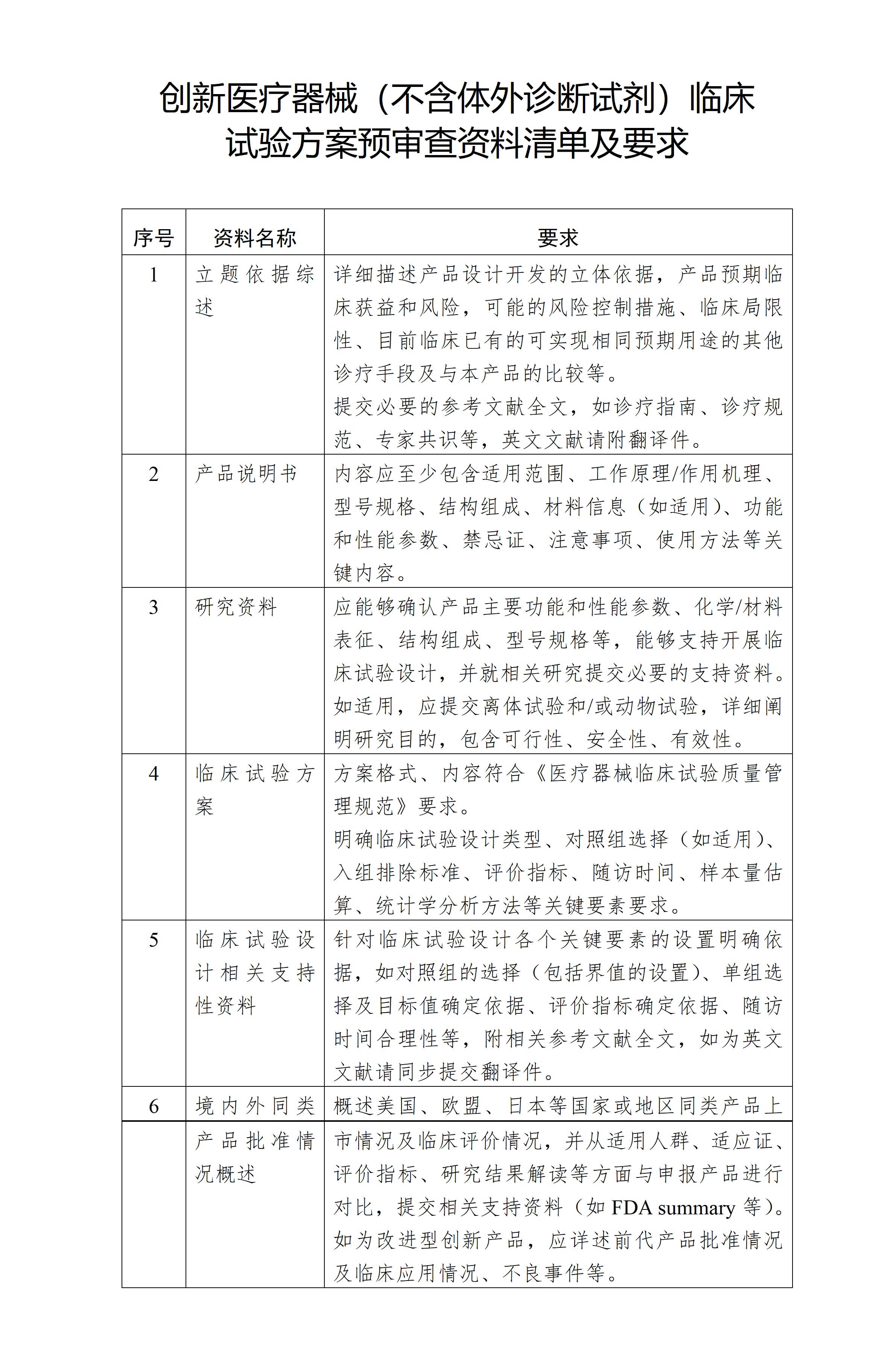 1.創新醫療器械(不含體外診斷試劑)臨床試驗方案預審查資料清單及要求