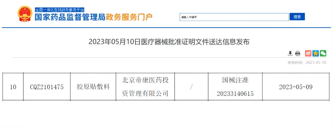 2023年5月9日,奧泰康北京CDMO中心取得「首張」國家藥監局批準的三類醫療器械注冊證(國械注準20233140615),系全國首個以細胞外基質來源的膠原蛋白為原料制備的三類膠原貼敷料。此項目是北京CDMO中心基于“十三五”國家重..