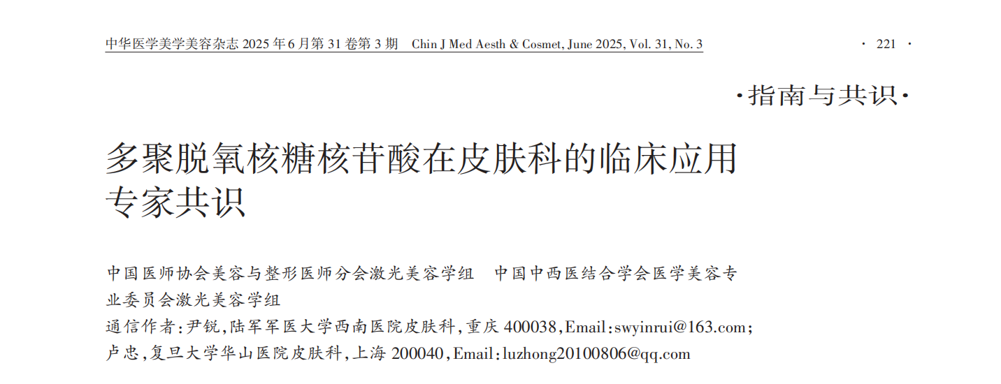 在追求健康與美的道路上,皮膚問(wèn)題始終是大眾關(guān)注的焦點(diǎn)。多聚脫氧核糖核苷酸(PDRN)憑借抗炎、促修復(fù)、抗衰老等多重功效正悄然掀起一場(chǎng)革新,逐漸成為皮膚修復(fù)與美容領(lǐng)域的熱點(diǎn)。通過(guò)《多聚脫氧核糖核苷酸在皮膚科的臨床應(yīng)用專家共識(shí)》,讓我們一起走進(jìn)PDRN的科學(xué)世界,探索皮膚修復(fù)與再生的未來(lái)可能!